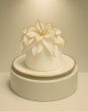 Предлагаем рассмотреть порционную подачу в виде карамельного цветка. Десерт будет представлять собой карамельный цветок с красивыми лепестками, выполненный в нежно-голубом прозрачном цвете, внутри которого будет нежнейший десерт, покрытый белым бархатным велюром и украшенный прозрачной или голубой карамельной капелькой в центре.