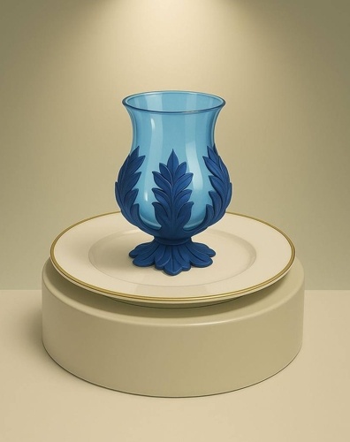 Необычный десерт в виде карамельного стаканчика с шоколадным обрамлением и на шоколадной ножке. Мы хотим предложить сделать десерт в красной карамели, а обрамление из шоколада сделать в золотом цвете в виде листиков
