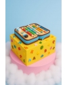 Торт 1 ярус, круглой формы, покрытый розовым бархатным велюром. Главным украшением торта являются фигурки героев в стиле аниме, выполненные из сладкой массы на основе какао масла. Дополняют композицию торта кристаллы из карамели разного размера в цветах прозрачный, розовый и тиффани, а так же поверхность торта и около торта украшена цветами из шоколадных полушариков в двухцветном исполнении в единой гамме с общей концепцией торта.