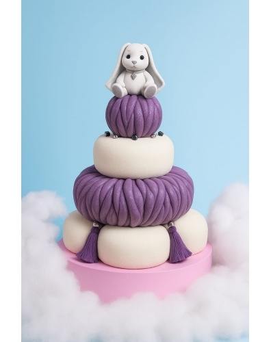 Композиция дополнена карамельными кристаллами: черными и прозрачными, и объемными кисточками, выполненными из сладкой массы на основе какао-масла.
