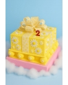 ярусе торта размещена композиция из двух дракончиков на шоколадном диске