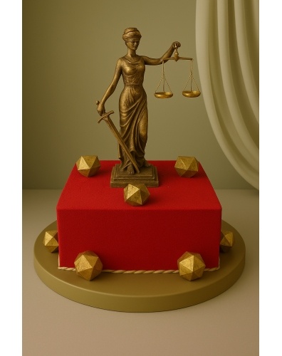 украшением торта является фигурка Фемиды, выполненная из сладкой массы