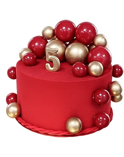 торт в 1 ярус, покрытый красным шоколадным велюром. Торт украшен веткой