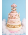 торте располагается праздничная композиция: золотая маска и жемчужные