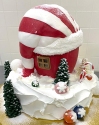 Круглый торт в 1 ярус покрытый шоколадным бархатным велюром белого цвета. Поверхность торта украшена фигурой лошадки в шарфике , выполненной из сладкой массы на основе какао масла и шоколадными новогодними шариками синего и золотого цвета с белыми снежинками. На боковой поверхности торта расположены шоколадные цифры 2026 красного цвета. Дополняет декор сахарная пудра. Диаметр торта 24 см , высота торта 10 см без учёта декора.