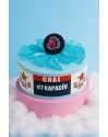 Торт в виде новогоднего подарка в 1 ярус, покрытый шоколадным велюром красного цвета. Торт украшен шоколадным бантом с оригинальным новогодним дизайном и сахарными снежинками. Дополнена композиция яркими, блестящими новогодними шарами.