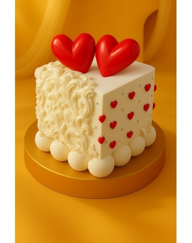 крема, шоколадными сердцами и кондитерскими бусами. Сверху торт украшен