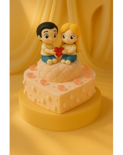 розовым велюром, сидят фигурки молодого человека и девушки, вместе они