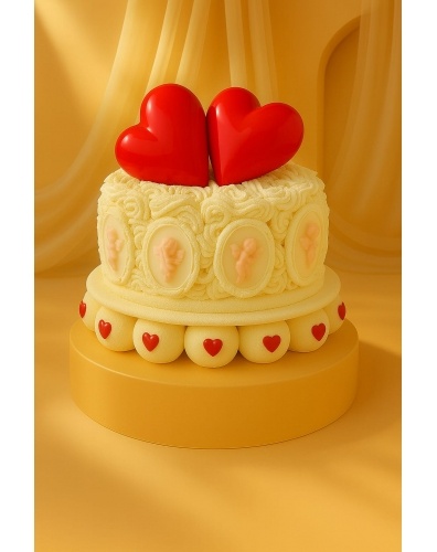 Свадебный торт в 1 ярус, небольшого размера. Торт в стиле Марии-Антуанетты с декором из нежного ванильного крема и шоколадных барельефов с купидонами.