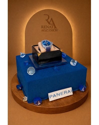 торт в 1 ярус, покрытый темно-синим бархатный велюром (васильковым).