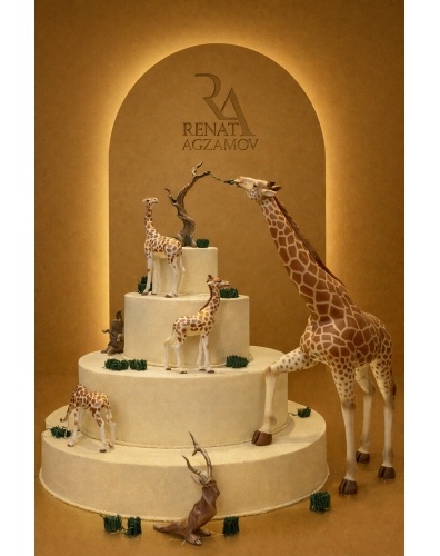 особенностью торта являются фигура большого жирафа и жирафов меньшего
