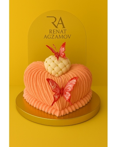 сердцем, декорированным золотыми сахарными бусинками.