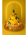 Торт на заказ в 1 ярус, покрытый шоколадным велюром цвета слоновой кости. Главным украшением торта является композиция в виде перевернутой бутылочки лака для ногтей из которой выливается лак. Бутылочка кажется застывшей в воздухе. Боковую сторону торта украшают шоколадные помады, маленькие карамельные лаки и карамельные кристаллы.