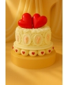 Верхний ярус торта украшает фигурка девушки, сидящей в кресле,