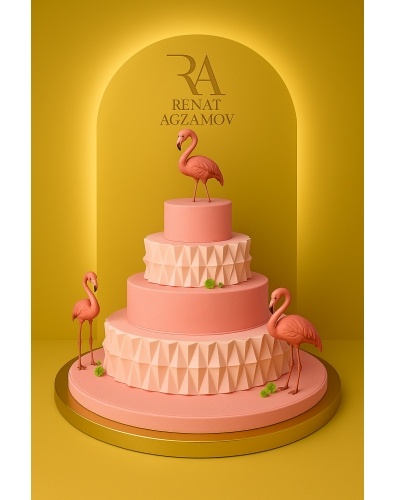 фламинго, выполненные в различных позах их сладкой кондитерской массы на
