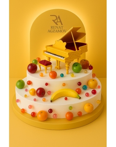 слоновой кости. Верхний ярус торта украшает шоколадный рояль желтого