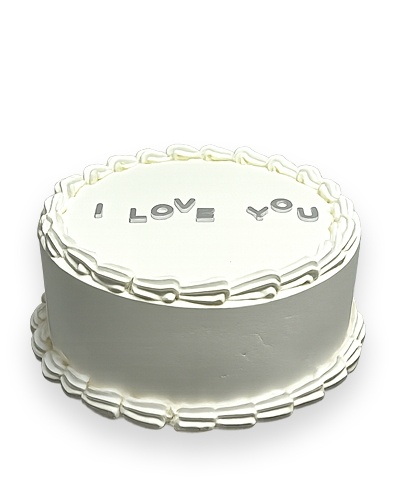 Торт в 1 ярус, украшенный надписью "Я люблю тебя". По нижней и верхней части торт украшен узорами из сливок.
