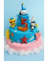 ярусе стоит паровозик с подарками, который так же выполнен из сладкой
