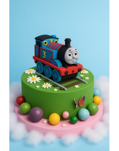 украшением торта является паровозик, выполненный из сладкой массы на