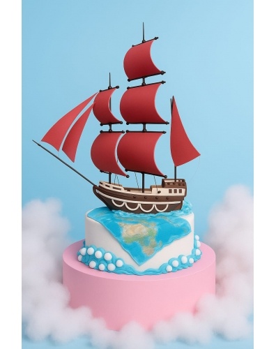 Главным украшением торта является парусник с алыми парусами, выполненный