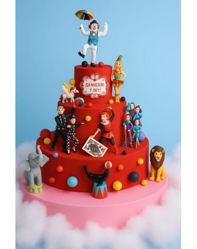 украшением торта являются клоуны и цирковые животные, которые украшают