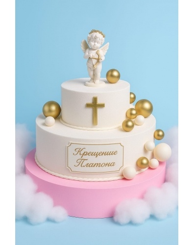 бело-золотой гамме, а так же торт украшает сладкая фигурка крестика и