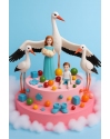 В центре торта располагается объемная фигурка котенка, выполненная из сладкой массы на основе какао масла.