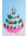 темно-синего цвета. На верхнем ярусе торта располагается большая фигурка
