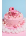Круглый торт в 1 ярус, покрытый шоколадным бархатным велюром нежно-розового цвета. Главным украшением торта являются разноцветные фигурки сквишей хомячков и лапок, а также кусочки сыра, выполненные из сладкой массы на основе какао-масла. Поверхность торта дополнительно украсят разноцветные шоколадные шарики разного размера с перламутром. Дополнительно можно добавить шоколадную цифру на торт, а так же надпись шоколадными буквами перед тортом.