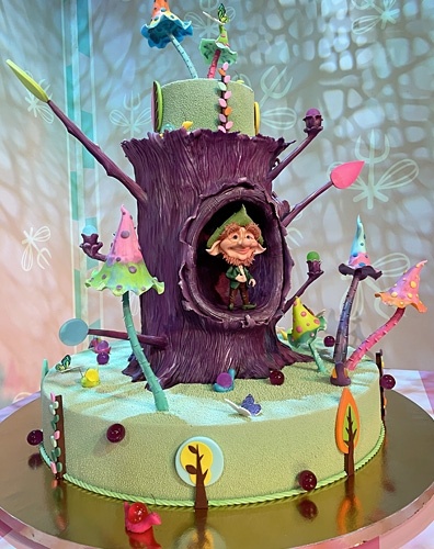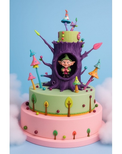 лесной житель-эльф в интересной позе. Дополняют торт яркие волшебные