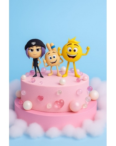 украшением торта являются фигурки трех Эмоджи, выполненных из сладкой