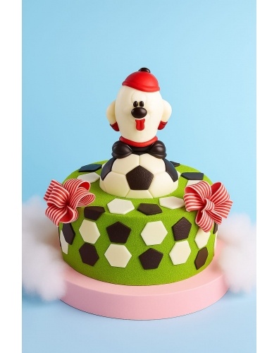 Торт на заказ для мальчика футболиста. Фигурка на торте и футбольный мяч из шоколада.
