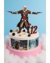 ярус торта украшен фигуркой дракона с сидящем на нем мальчиком,