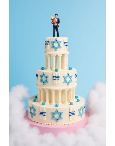 Звездами Давида, а так же Талитами. Верхний ярус торта украшает фигурка