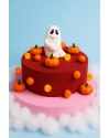 является белая овечка сидящая в центре торта, выполненная из сладкой