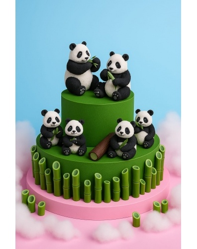 торта являются мишки-панды, выполненные из сладкой массы на основе