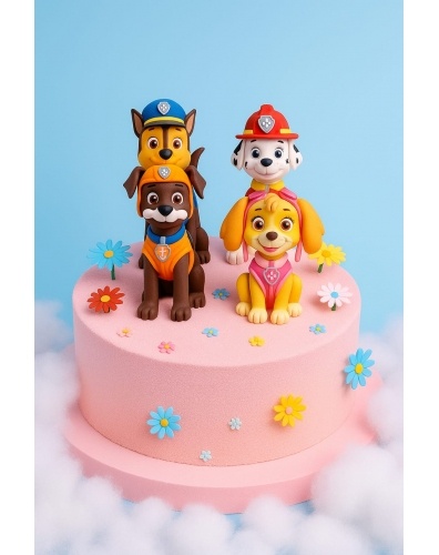 велюром. Главным украшением торта являются фигурки щенков, выполненные
