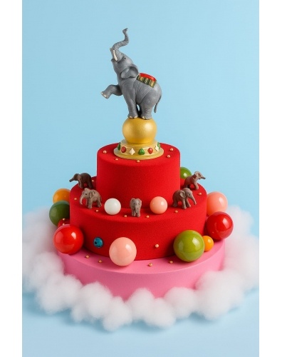 массы на основе какао-масла. Нижний ярус украшен шоколадными слониками,
