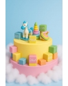 Торт на заказ в 2 яруса покрытый шоколадным велюром желтого цвета. Главным украшением торта являются объемные фигурки смайликов, выполненные из сладкой массы на основе какао-масла. Боковая сторона каждого яруса украшена разноцветными шоколадными шарами разного размера и карамельными, разноцветными сердечками.