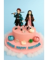 сладкой массы на основе какао-масла. Нижний ярус торта украшают фигурки