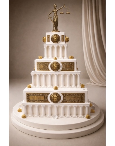 Верхний ярус торта украшает фигурка Фемиды, выполненная из сладкой массы