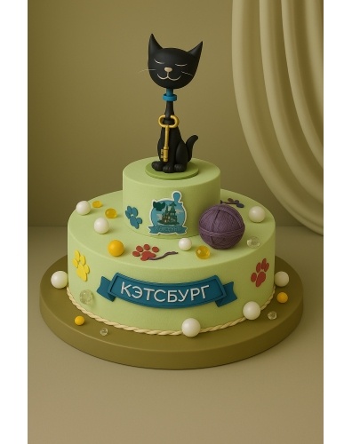 Верхний ярус торта украшает фигурка кота, выполненная из сладкой массы