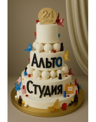 Корпоративный торт на день рождение или открытие Студии Красоты, украшен