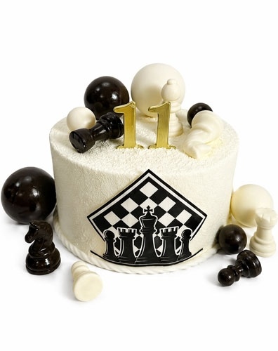 фотопечать логотипа. Дополнительно можно добавить шоколадную цифру на торт, а так же надпись шоколадными буквами перед тортом.