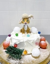 Торт 1 ярус, круглой формы, покрытый белым бархатным велюром. На поверхности торта располагаются фигурки