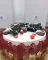 шоколадными елками. Верхний ярус торта украшает большой снеговик,