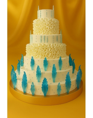 Нижние три яруса торта украшены голубыми карамельными лепестками