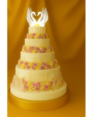 подвесками. Нижний ярус торта украшен карамельными лебедями меньшего