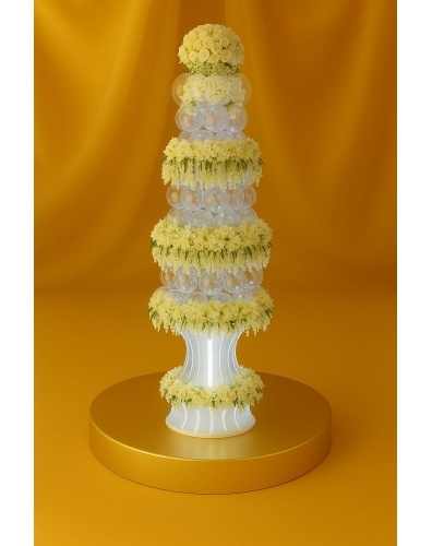 Торт в 5 ярусов, покрытый шоколадным велюром цвета слоновой кости. Торт
