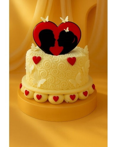 украшением торта является шоколадное сердце с распечаткой, выполненной